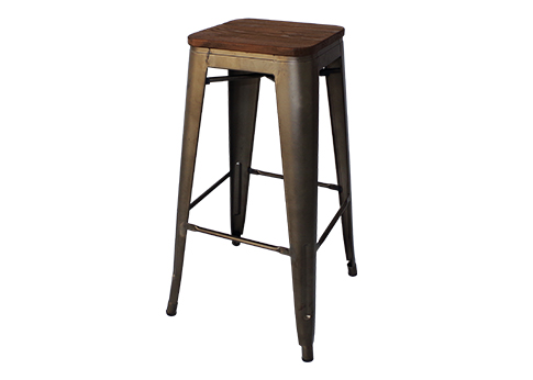 The four-legged steel stool lends itself well to outdoor applications, easy to transport and easy to clean.